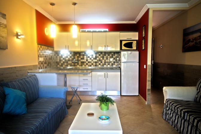 Very beautiful, newly refurbished apartment to rent in Puerto Rico (Gran Canaria). Complex is located in central area, close to all the amenities. It has two bedrooms, bathroom, fully equipped kitchen and a comunal swimming pool.