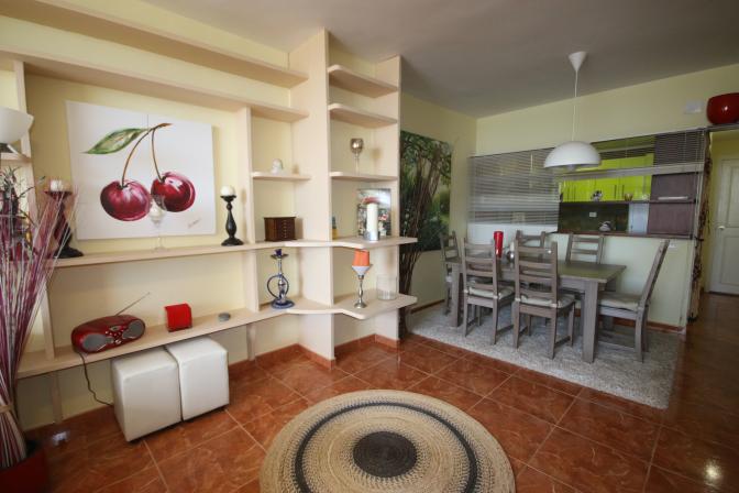 Apartment in San Agustín (Gran Canaria). 2 bedrooms, 2 bathrooms, living / dining room, separate kitchen and another room with access to the terrace. The apartment on the 1st beachline is modernly furnished. There is a communal swimming pool.