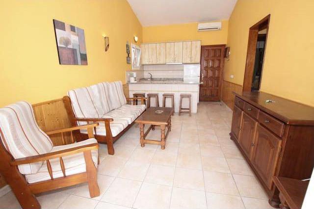 Bungalow in Playa del Ingles (Gran Canaria). 2 bedrooms, 1 bathroom, living / dining room, American kitchen and large terrace. The property is fully furnished and air conditioned. The complex has a communal pool.
