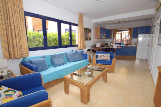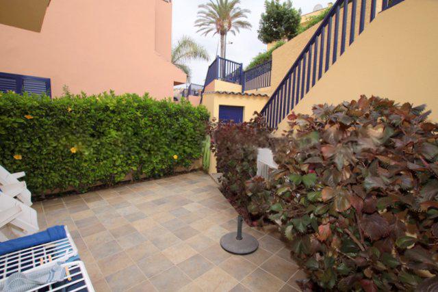 Duplex in Meloneras (Gran Canaria). 2 bedrooms, 2 bathrooms, living/dining room, American kitchen, a large garden and terrace. The property is fully furnished with air conditioning. The complex has a communal pool, next to beach and the most beautiful comercial área in Gran Canaria.