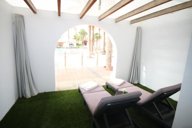 Newly reconstructed and refurbished bungalow is available for long term rent in a quiet complex in Campo Internacional. It has two bedrooms, bathroom, living room with kitchen and a terrace. There is as well Internet conection, international TV channels installed. Fully equipped kitchen also has dis...
