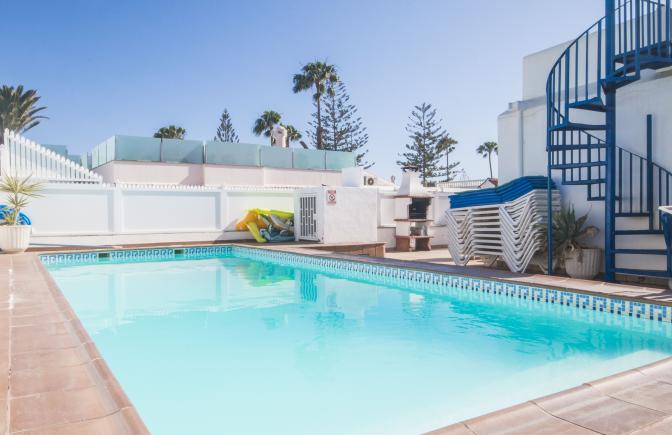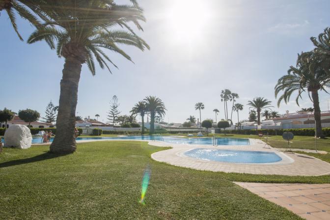 A spacious 4 bedroom bungalow with a private swimming pool and roof terrace, situated in a tranquil complex in Playa del Ingles. Interior consists of 4 bedrooms, 2 bathrooms and a wide living room, connected to the kitchen area. Bungalow is equipped and fully furnished with all necessary appliances....
