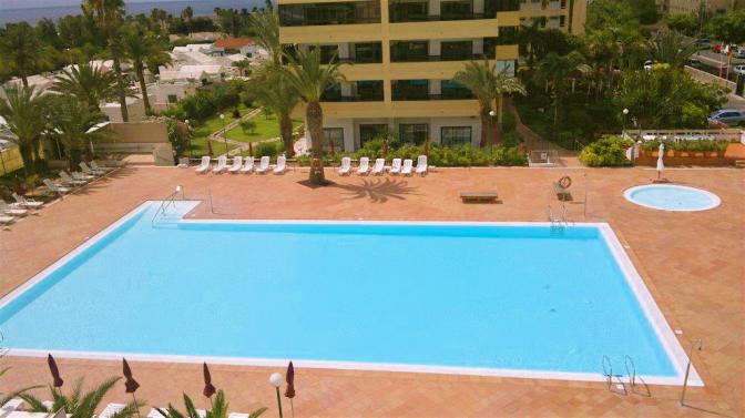 Apartment in Playa del Ingles (Gran Canaria). 3 bedrooms, 2 bathrooms, living room, dining room and separate kitchen. It has air conditioning and a closed garage for 2 cars. The complex has a communal pool and garden. The building has an elevator. It has a view of sand dunes and the town of Playa de...