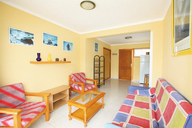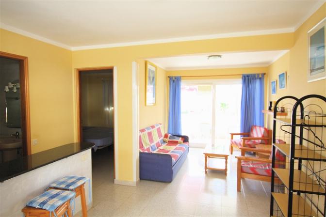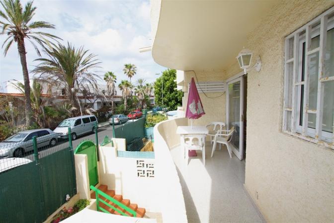 Charming 1 bedroom apartment in quiet area of San Agustin for sale and rent. It is fully furnished and has 1 bathroom, kitchen and a small balcony. There is a swimming pool, garden areas and a restaurant located in the same complex.