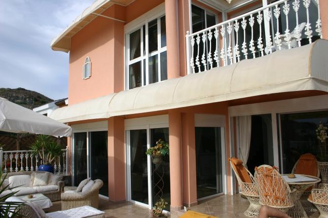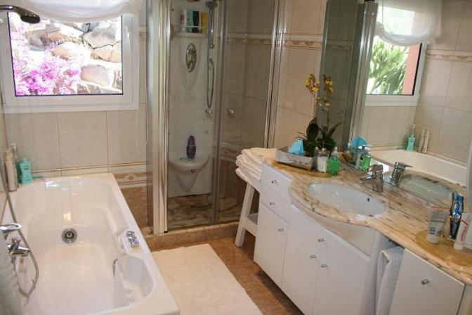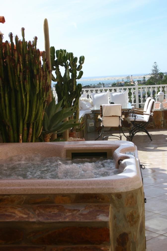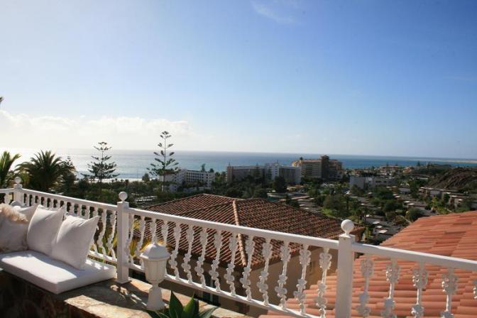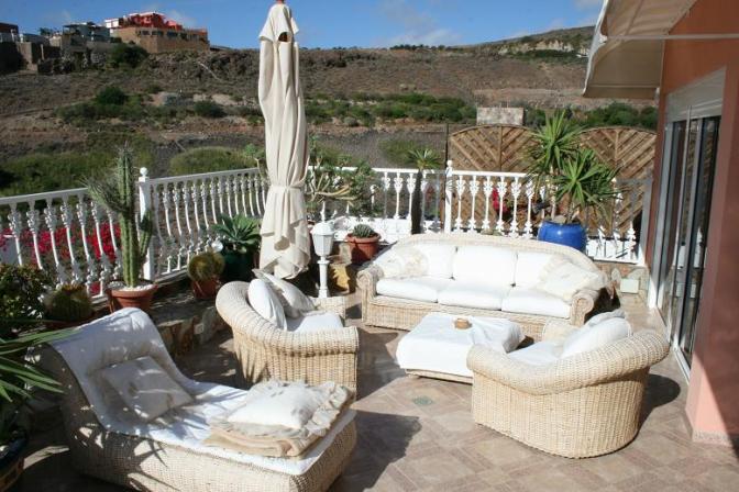 House in San Agustin (Gran Canaria). 3 bedrooms, 2 bathrooms, 1 toilet, living / dining room, kitchen. There is also a jacuzzi and private garage. It has amazing panoramic sea views from the cozy terrace and communal pool.