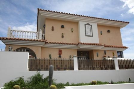House in Sonneland (Gran Canaria). 5 bedrooms, 3 bathrooms, living / dining room, kitchen and storage room. It has a terrace upstairs, garage, security system and private swimming pool. The house already has internet telephone and satellite TV installed.