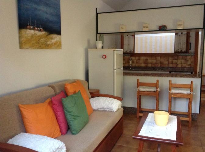 Bungalow en Maspalomas (Gran Canaria). 2 dormitorios con armarios empotrados, 1 baño, salón / comedor, cocina americana. Cuenta con patio semi-cubierto, urbanización privada garden.The tiene piscina comunitaria y piscina para niños y pista de tenis. Cerca del centro comercial Faro 2.